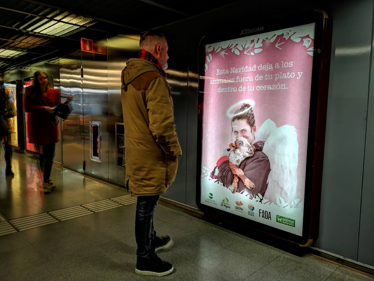 Se trata de un anuncio que podrá verse durante toda la época navideña en el metro de Hospital Clínic de Barcelona, del 11 de diciembre al 7 de enero. Es un bonito cartel que pretende concienciar, con el lema “Esta Navidad deja a los animales fuera de tu plato y dentro de tu corazón”.