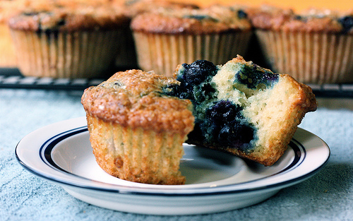 Añadir hasta 1 / 2 taza más de arándanos más en la parte superior de cada molde, presionando en la masa poco a poco pero no sumergir.