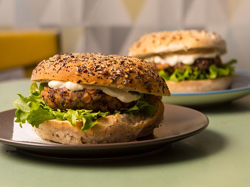Pasar las hamburguesas por el recipiente, luego empanar con pan rallado y poner a frizar, hornear o hacerlas fritas en una sarten.