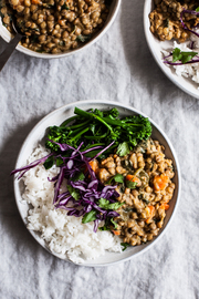 Añadir la pasta de ajo y pochar 2 minutos. Agregar el jengibre, la cúrcuma, el chile rojo, el orégano, la canela y el garam masala. Mezclar bien y rehogar.