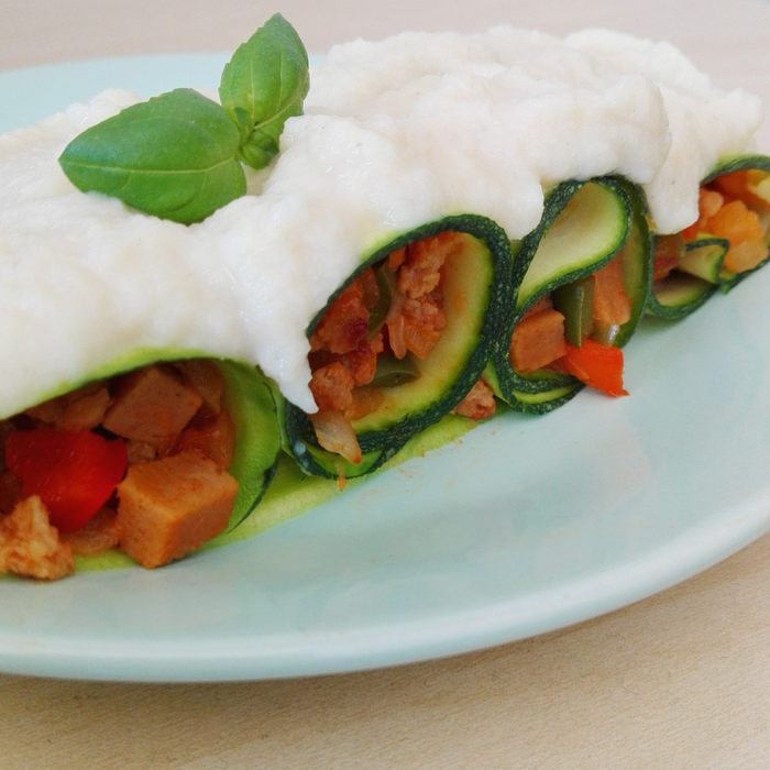 La pasta al dente se libera del agua, se deja en la fuente de su cocción y se agrega encima la salsa con verduras y un poco de oregano molido.