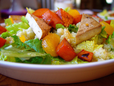 3. vierta el aceite y vinagre y tape; deje reposar y enfriar por una hora. sazone con sal y pimienta al gusto y sirva. combina con pan fresco.