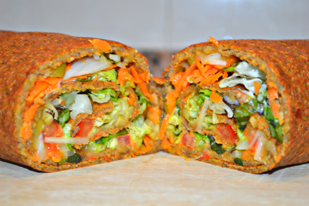 Juntar todos los ingredientes menos la lechuga y procesarlos o picarlos y mezclarlos muy bien. colar el jugo de la mezcla (y beberlo aparte) y servirla cubriendo con una capa uniforme las hojas de lechuga para posteriormente doblarlas: ¡los tacos están listos!
