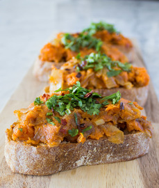 Tortilla de papas (de patatas) vegana, o sea 100% de origen vegetal, sin huevos, sin colesterol y lo más importante libre de explotación animal.