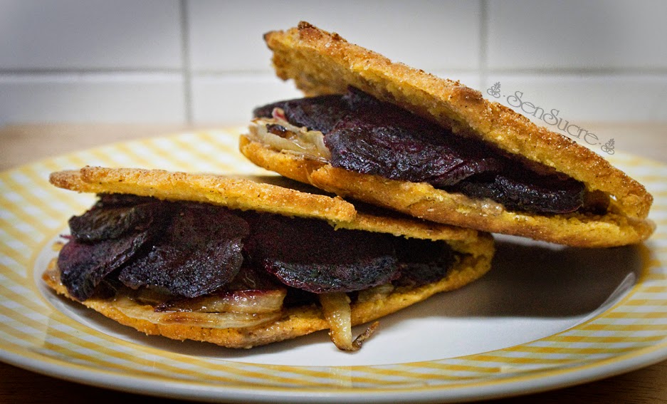 Arepa de maíz integral con remolacha y cebolla
