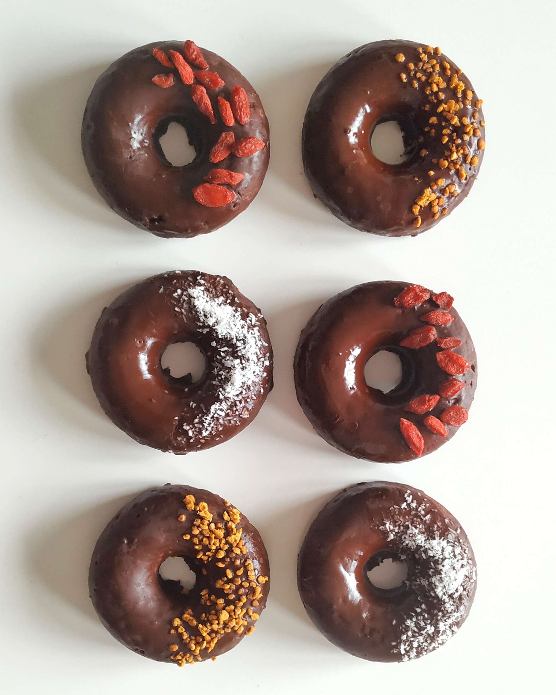 Sacar del horno y dejar enfriar unos 5 minutos y en seguida desmoldar los donuts y dejarlos enfriar encima de una rejilla.