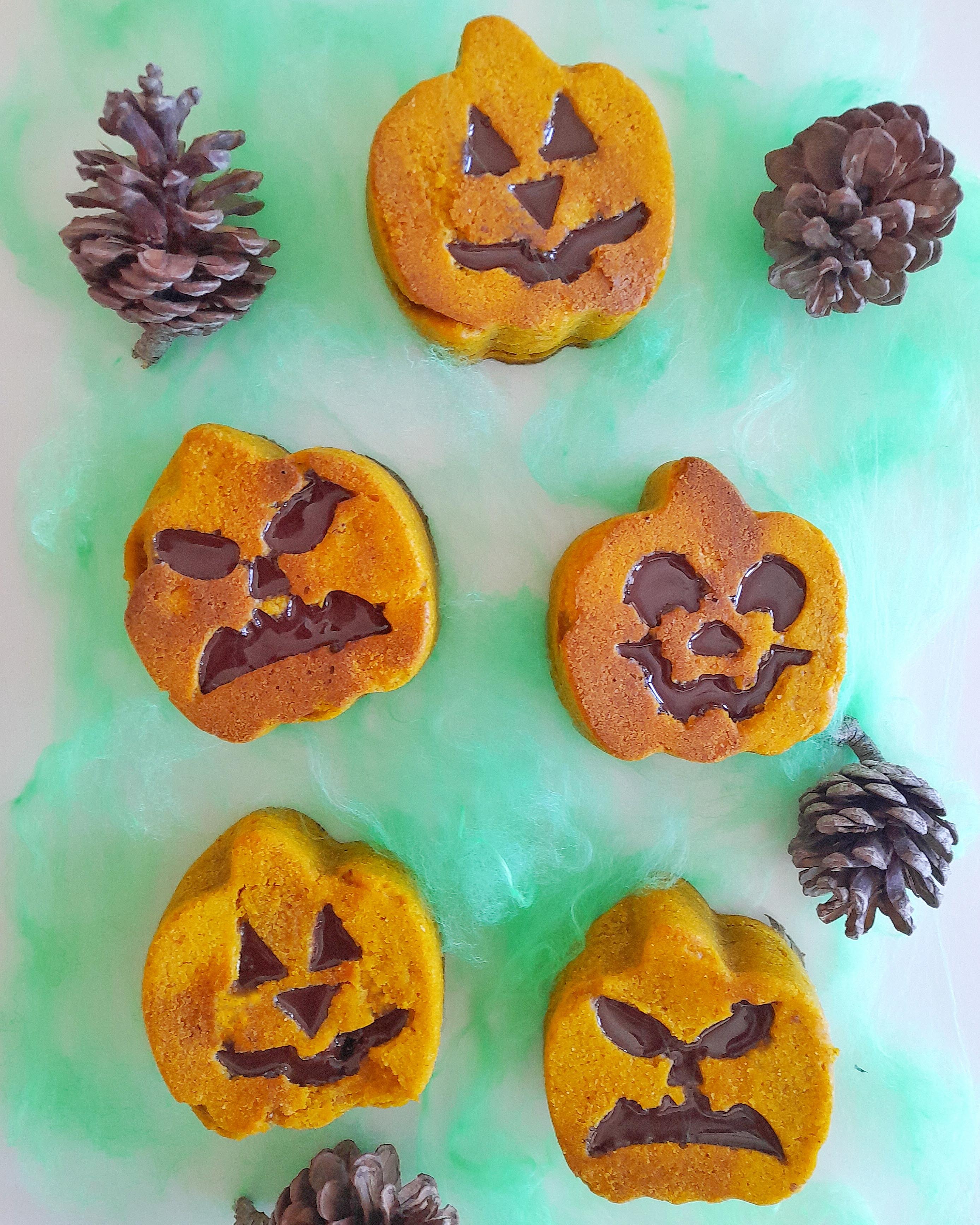 Cuando los bizcochitos estén horneados, sacar, dejar enfriar y luego colocarlos sobre una rejilla para dejar que se enfríen por completo. Llenar los huecos de la boca y ojos con el chocolate.