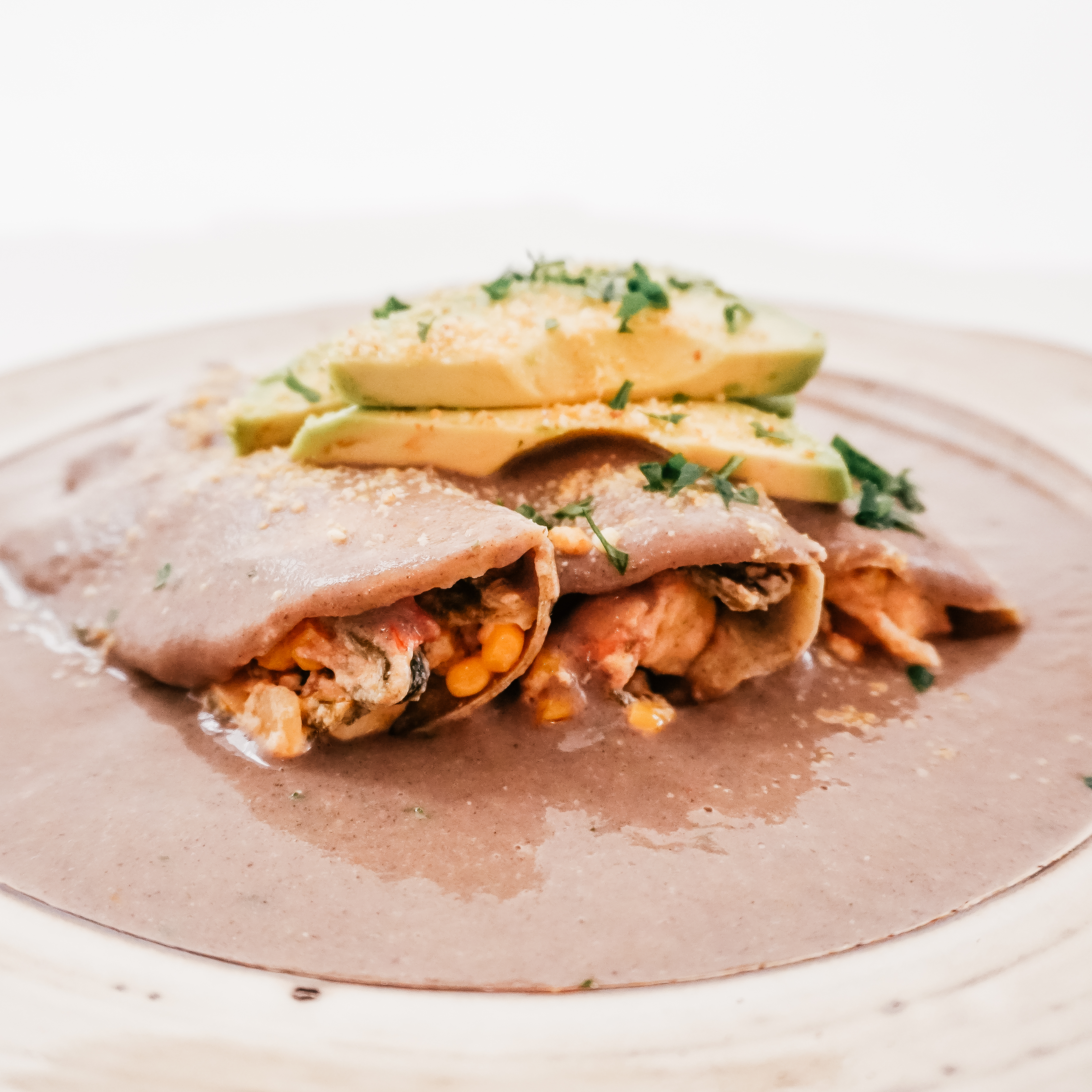 .sirve rellenando las tortillas y bañando con la salsa de frijoles.