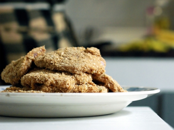 Se coloca el pan molido en un plato hondo y se sazona con pimienta con limón.